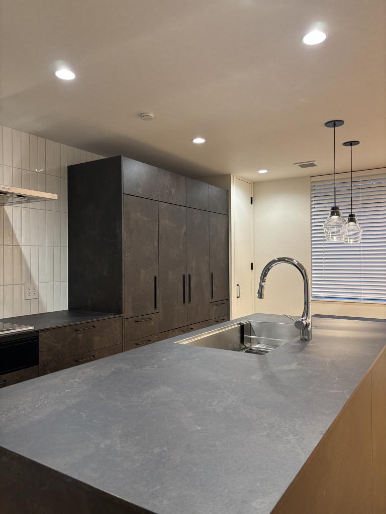 M 倶楽部事務局(T)ご投稿ありがとうございます!石目調のカウンター、タイルやペンダント照明との組み合わせがキッチン全体に高級感を生み出していますね。こんなに気持ちの良いキッチンに立ったらお洒落なお料理ができそうです!